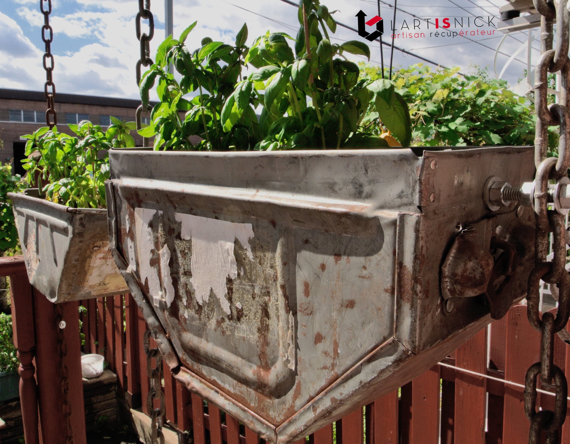 Création de mobilier upcycling pour les ruelles vertes et le jardin. Fait à Montréal.